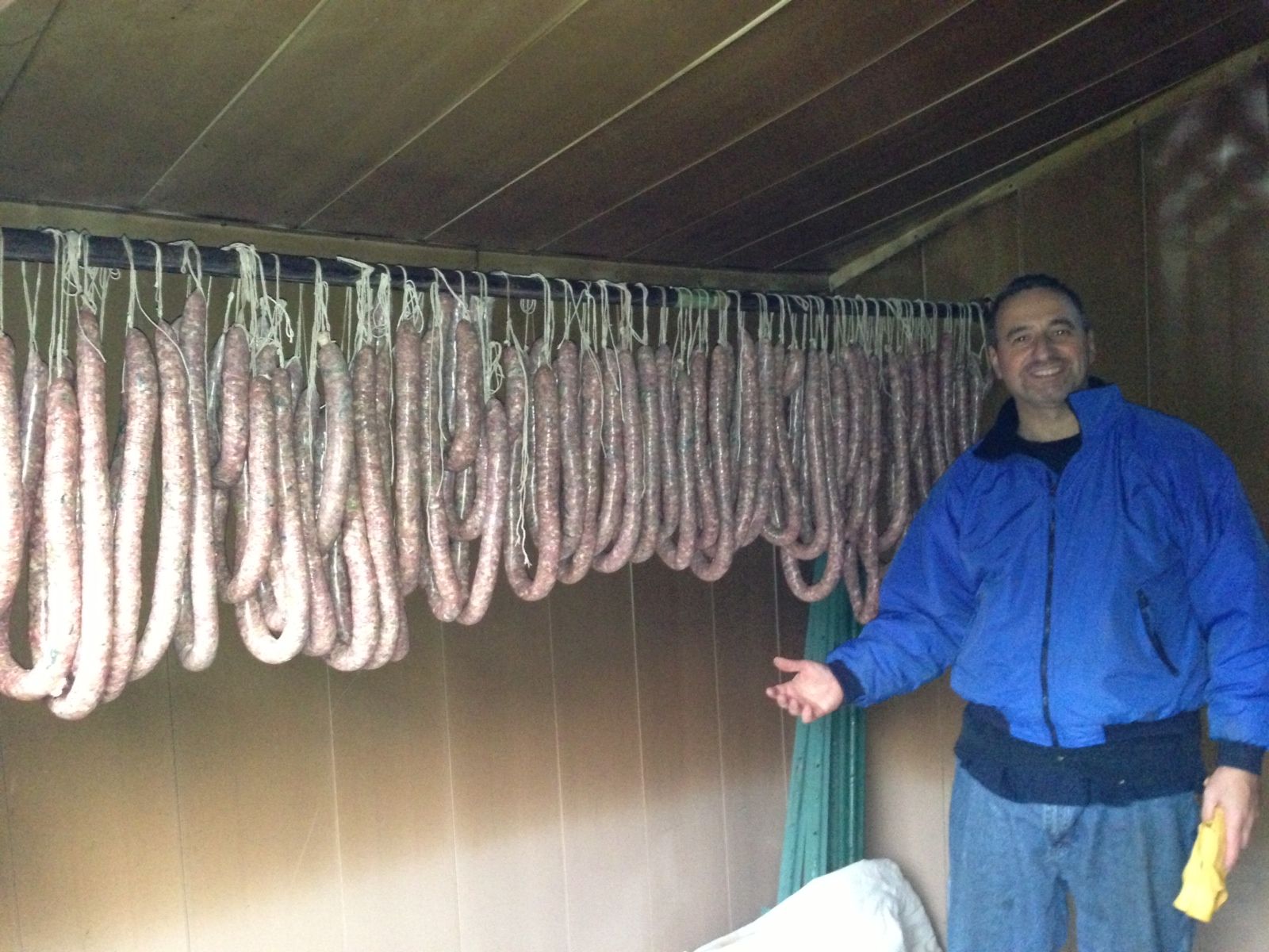 mouth-watering traditional smoked Greek sausages (loukanika) from central Greece (Karpenisi)
